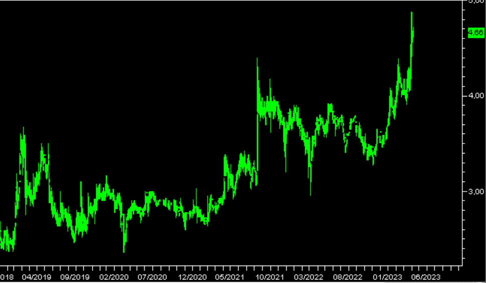 Saremmo sorpresi però, sinceramente, nel vederla lavorare oltre i 4.9€ nell'imminente futuro; siamo più propensi a valutare un ingresso nel ritracciamento più ai 4.05€ che ai 4.4€