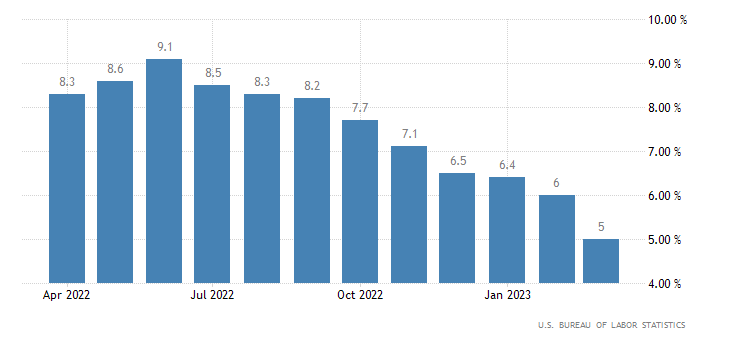 L’indice dei prezzi al consumo su base annua a marzo segna un +5,0%, contro un consensus del +5,2% e registrando un rallentamento rispetto al +6,0% di febbraio. Inoltre quella di marzo è la crescita più contenuta da aprile 2021, allo stesso livello di quella registrata a maggio 2021. Il dato è rilasciato dall’U.S. Bureau of Labor Statistics.
