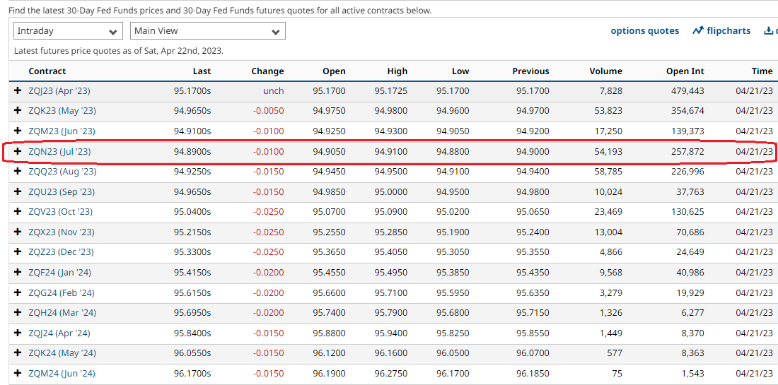 Passando ora ad analizzare il mercato monetario, con venerdì scorso sono terminate le dichiarazioni dei vari membri della FED e da oggi inizia il black out prima della riunione del FOMC del prossimo 3 maggio. La Fed Future Strip continua a prezzare un altro rialzo entro giugno, ma al 90% al 3 maggio, e più di 2 tagli poi entro dicembre.