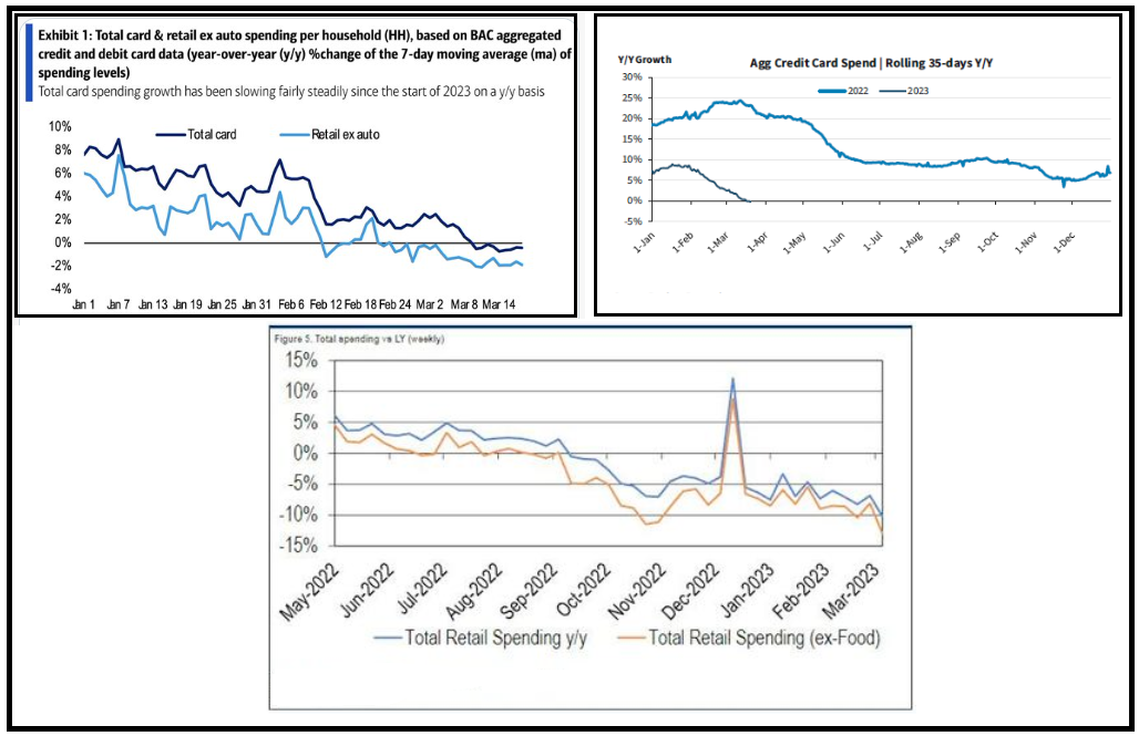 Oltre a ciò, diversi studi segnalano che nell'ultimo periodo la spesa delle carte di credito sta rallentando in maniera significativa. Lo hanno riportato Citigroup, Barclays, e Bank of America.