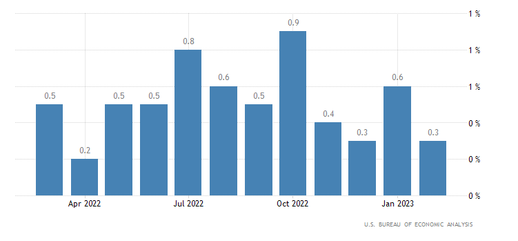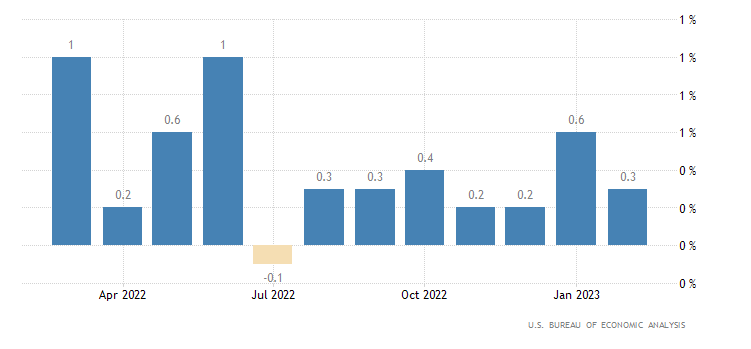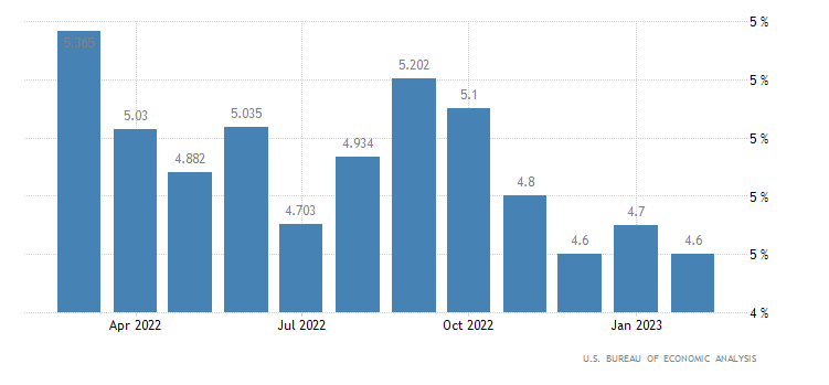 A livello annualizzato la crescita di febbraio è del 4,6%, contro un consensus del +4,7% ed un dato di gennaio sempre del +4,7%. I dati sono rilasciati dall’U.S. Bureau of Economic Analysis.