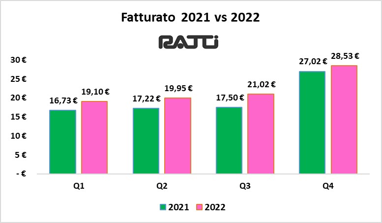 Rispetto al 2021, la crescita del fatturato si è dimostrata costante in tutti i trimestri. La seconda parte dell'anno (come ampiamente indicato nelle note del management) è stata decisamente più "interessante.