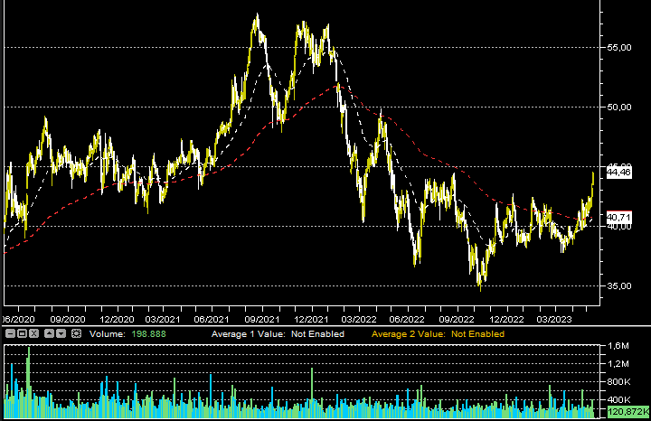 Partendo dall'avviso di chiamata innescatosi ai 41.3€, successivamente confermati dall'ulteriore graffio alla rottura dei 43.6€, non resta che attendere l'ultimo test di maturità ai 45 €.