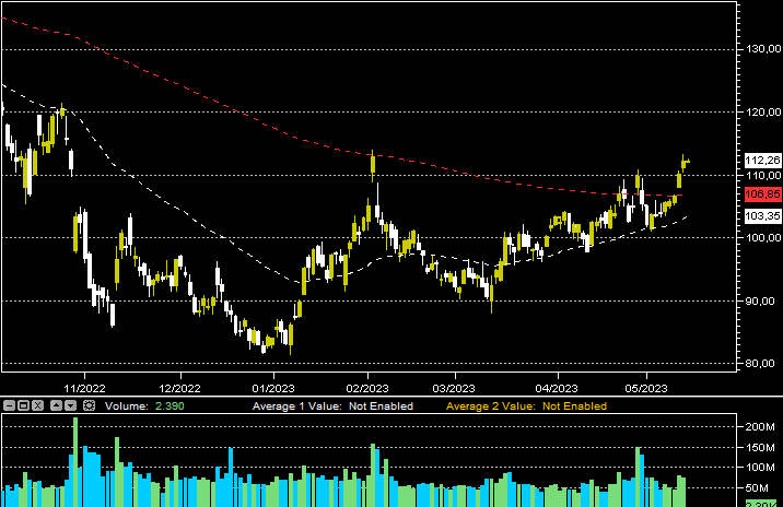 Memori di quanto successo ed evidenziato sempre in un recente articolo, in cui si evidenziava quanto accaduto in una fase di negoziazione al di fuori dei normali orari di contrattazione, in cui l'azione si era andata ad elevare sino ai 124$ circa, notiamo come le sedute successive abbiano disegnanto un terreno solido su cui poggiarsi ai 105 $ per puntare nuovamente agli stessi prezzi.