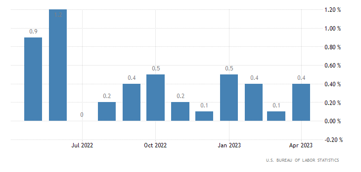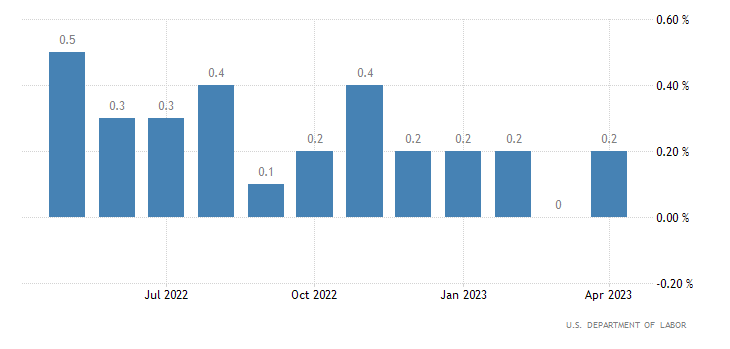 Su base annua la crescita di aprile è del 5,5%, anche in questo caso in linea con il consensus, ma appena inferiore al rialzo del 5,6% di marzo. I dati sono rilasciati dall’U.S. Bureau of Labor Statistics.