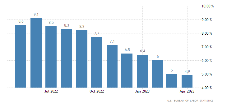 L’indice dei prezzi al consumo a livello annualizzato ad aprile si attesta al 4,9%, appena sotto al consensus del 5,0% ed al dato di marzo sempre del 5,0%. Quella di aprile 2023 inoltre è la rilevazione più bassa da aprile 2021. Il dato è rilasciato dall’U.S. Bureau of Labor Statistics.