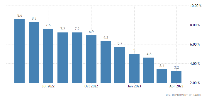 A livello annualizzato la crescita di aprile è del 3,2%, sotto al consensus del +3,3% ed al +3,4% registrato a marzo. Tra l’altro il dato di aprile è il più contenuto da marzo 2021. Il dato è rilasciato dall’U.S. Bureau of Labor Statistics.