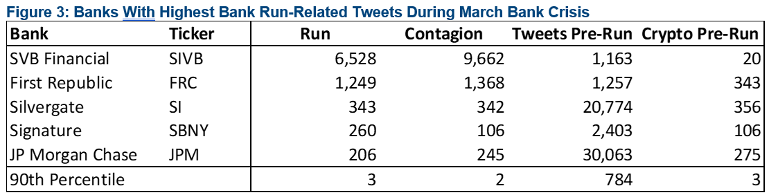 I dati della Federal Reserve della scorsa settimana hanno mostrato ancora una volta che mentre il sistema bancario si è ampiamente stabilizzato rispetto a metà marzo, la dipendenza dalla liquidità della FED rimane elevata. Una nuova ondata di declassamenti del credito da parte di Moody's ha sottolineato la persistenza dei rischi di liquidità. La reazione al pre-annuncio della trimestrale economica, nominalmente positiva, di Western Alliance ha mostrato quanto il mercato rimanga scettico e, sebbene non tutte le banche abbiano ancora riportato i risultati del primo trimestre, gli utili finora hanno evidenziato una crescente pressione sui margini di interesse netti e perdite persistenti di HTM (held to maturity), anche prima che il ciclo del credito finisse. I risultati di First Republic hanno sottoperformato anche le aspettative dei venditori. Questo rapporto evidenzia anche le banche colpite dal fallimento di BBBY (Bed Bath & Beyond) e un documento accademico sul ruolo di Twitter nelle corse agli sportelli di marzo.