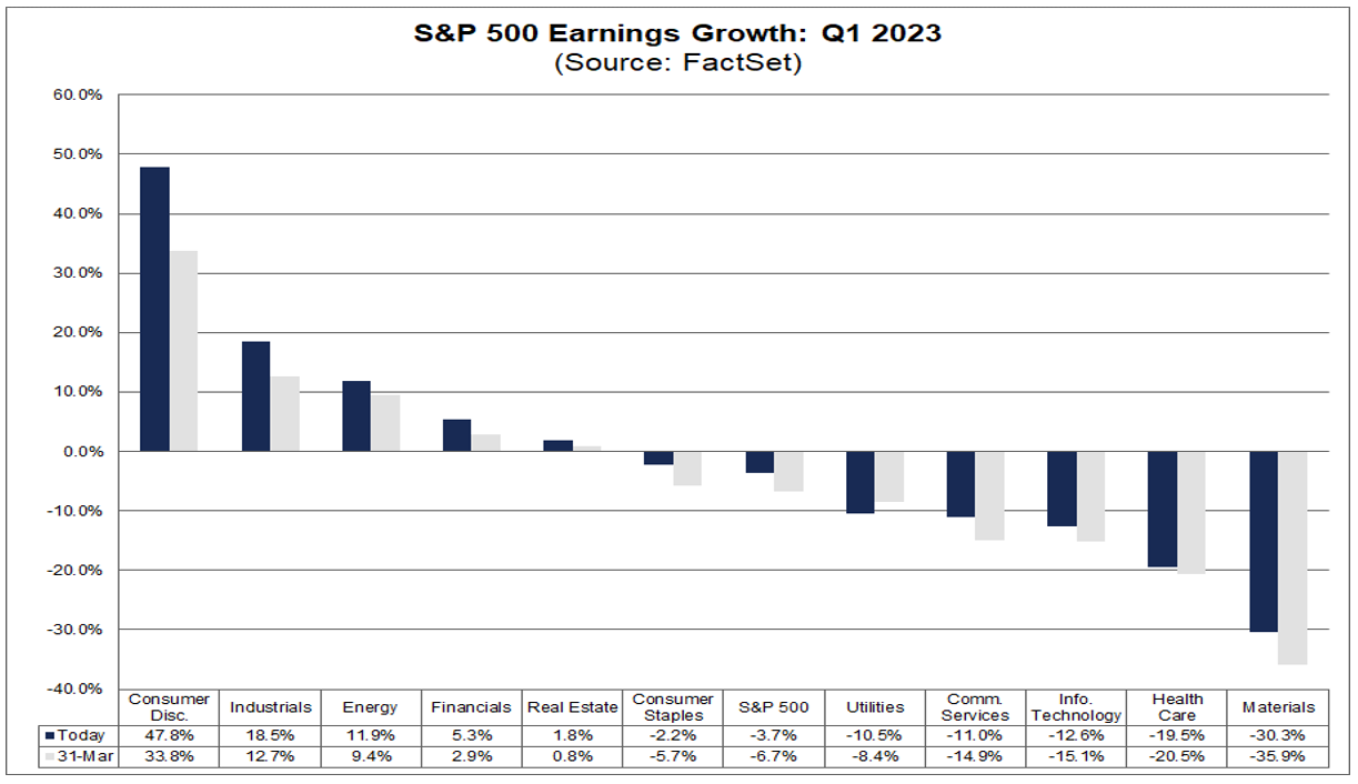 Cinque degli undici settori registrano una crescita degli utili anno su anno, guidati dai settori dei beni di consumo voluttuari e degli industriali. D'altra parte, sei settori stanno registrando un calo degli utili anno su anno, guidati dai settori dei materiali e della sanità.