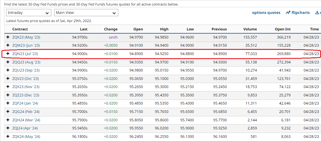 Passando ora ad analizzare il mercato monetario, nulla di rilevante da commentare vista l’attesa della riunione del FOMC di mercoledì prossimo nella quale con il 90% delle probabilità, l’esito sarà per un rialzo dei tassi di 25 bps. La Fed Future Strip continua a prezzare un altro rialzo entro maggio e poi 2 tagli entro dicembre.