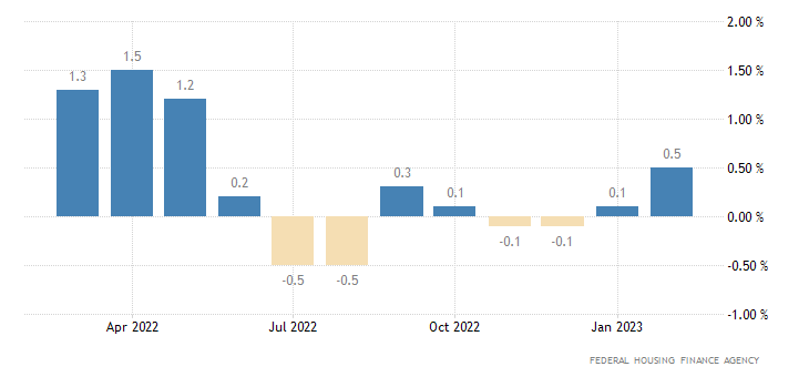 L’indice di prezzo delle case a livello mensile di febbraio, rilasciato la scorsa settimana, registra una crescita dello 0,5% contro un consensus che invece indicava un calo e dopo un +0,1% a gennaio (rivisto da +0,2%). Il dato è rilasciato dalla Federal Housing Finance Agency.
