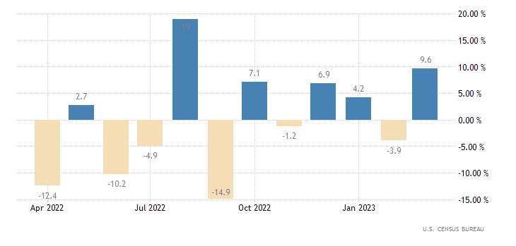 Le vendite di nuove case a livello mensile a marzo crescono quasi a doppia cifra registrando un +9,6%, con un dato che passa dalle 623 mila unità di febbraio (rivisto da 640 mila) alle attuali 683 mila. Il dato è rilasciato dall’U.S. Census Bureau.