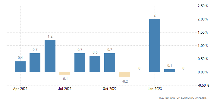 Il dato preliminare del primo trimestre 2023 relativo all’indice dei prezzi PIL, invece, segna una crescita del 4,0%, appena sopra al +3,9% dell’ultimo trimestre 2022. Il dato è rilasciato dall’U.S. Bureau of Economic Analysis.