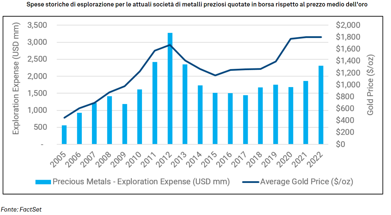 Anche il trend dei maggiori costi di esplorazione e sviluppo va contro il trend storico di minori spese di esplorazione negli ultimi dieci anni (vedi Figura 4). Solo di recente l'aumento dei prezzi delle materie prime ha incentivato le aziende a reinvestire tramite la punta di perforazione (non avendo ancora raggiunto i livelli massimi di spesa per l'esplorazione visti nel 2012).