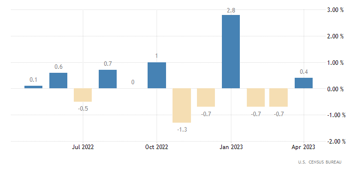 Le vendite al dettaglio a livello mensile ad aprile crescono dello 0,4%, invertendo direzione rispetto ai due mesi precedenti accompagnati dal segno ‘meno’ (-0,7% a marzo), ma deludendo un consensus fissato al +0,8%. Il dato è rilasciato dall’U.S. Census Bureau.