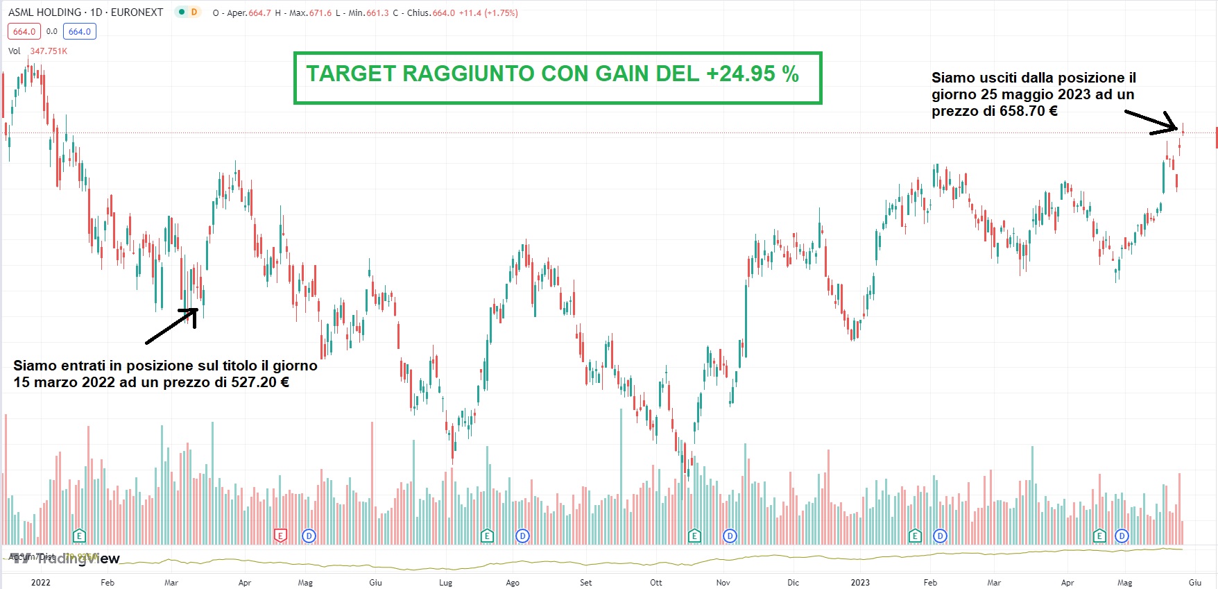 Questa volta si tratta di Asml Holding un titolo sul quale abbiamo guadagnato un ottimo +24.95 %.