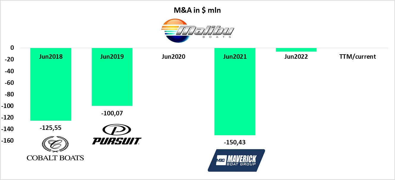 Come già evidenziato in precedenza, uno dei più importanti driver utilizzati dal management per realizzare questa imponente crescita è stato proprio l’M&A: nel corso degli ultimi anni MALIBU BOATS ha investito ben $ 375 mln per portarsi a casa ottimi brand del calibro di COBALT BOAT, PURSUIT e MAREVIK.