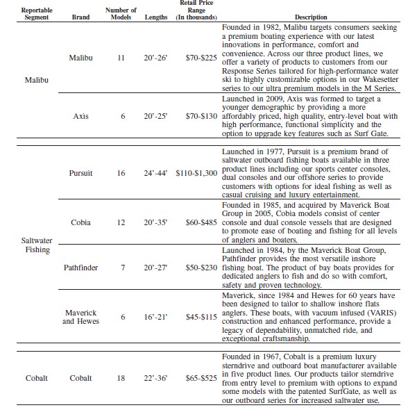 MALIBU BOATS opera sul mercato attraverso otto brand che ha acquisito nel corso degli anni. Il posizionamento all’interno del mercato di riferimento è ottimo: le prestazioni delle imbarcazioni sono particolarmente apprezzate e vengono considerate prodotti “premium”. MALIBU BOATS può pertanto essere considerata il leader all’interno della propria nicchia di riferimento (30% del mercato).