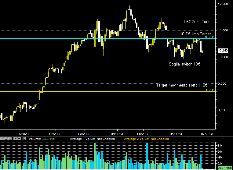 Sopra i 10,7 € l'atmosfera si rasserena e torna forte la direzionalità favorevole per i long con target agli 11,5 €.