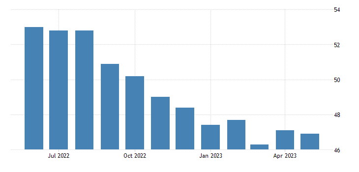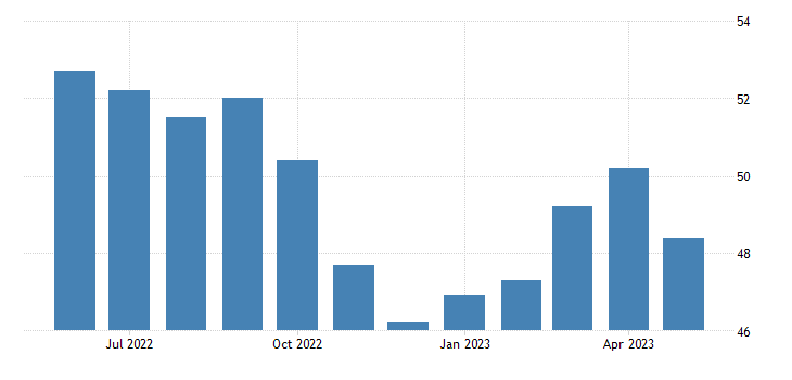Il Chicago PMI, che aveva marcato un discreto rimbalzo a aprile, a maggio ha ceduto oltre 8 punti, segnando i minimi per il 2023. Il dato di maggio si attesta a quota 40,4 punti, dato più basso da novembre 2022. Ad aprile si era attestato a quota 48,6 punti ed il consensus prevedeva un calo solo fino a 47,0 punti. Il dato è rilasciato dall’ISM-Chicago, Inc.