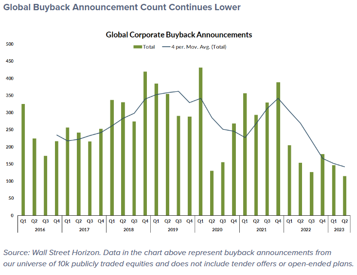 Andando avanti veloce fino ad oggi, la maggior parte delle aziende è apparentemente riluttante a dare voce ai piani di riacquisto. Le incertezze economiche e sugli utili sono elevate. Il lato positivo è che la “Merger&Acquisition” potrebbe essere in ripresa, quindi c'è la speranza che la seconda metà del 2023 sia più ottimista.