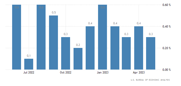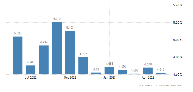 A livello annualizzato, a maggio si registra un +4,6%, rilevazione praticamente in linea con il consensus del +4,7% ed il dato di aprile sempre del +4,7%. I dati sono rilasciati dall’U.S. Bureau of Economic Analysis.
