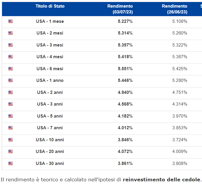 A livello di tassi, pesantissimi i bonds USA, con salita a 2 cifre per le principali scadenze, e la curva 2-10 ancora oltre i 100 bps di inversione. A tal proposito risulta molto interessante notare come la curva dei tassi termina il semestre scontando praticamente altri 2 rialzi da parte dell'ECB. La curva tedesca chiude al massimo livello di inversione dal 1992, a -80 bps. La più invertita è quella canadese e quella USA a -105 è a -2 bps dal record segnato prima della crisi bancaria di marzo (v. grafico):