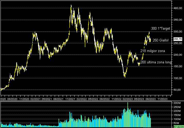 Permanendo sopra i 250, vede sempre l'obiettivo primario ai 300 dollari e questa, suppongo, sia una buona base di partenza per coloro i quali la abbiano già in portafoglio.