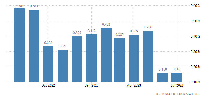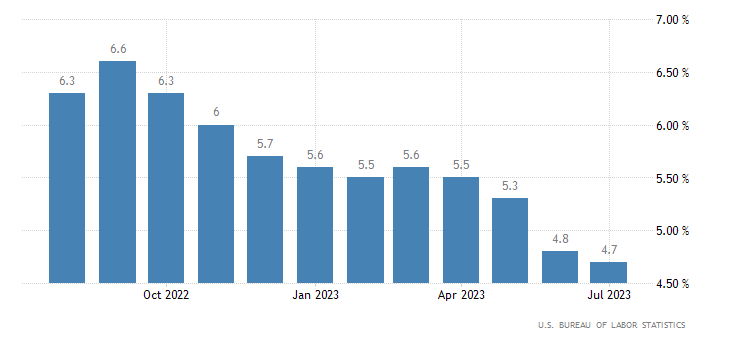A livello annualizzato, il dato di luglio segna un +4,7%, crescita appena inferiore al consensus fissato al +4,8% ed al +4,8% di giugno; per trovare un dato inferiore a quello di luglio si deve tornare ad ottobre 2021. I dati sono rilasciati dall’U.S. Bureau of Labor Statistics.