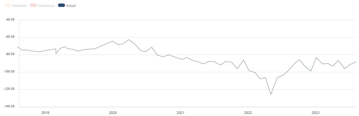 La bilancia commerciale che tiene conto solo dei beni esportati ed importati, invece, a giugno segna un -88,2 miliardi di dollari; la rilevazione di maggio è stata di -91,3 miliardi di dollari. Il dato è rilasciato dall’U.S. Bureau of Economic Analysis.