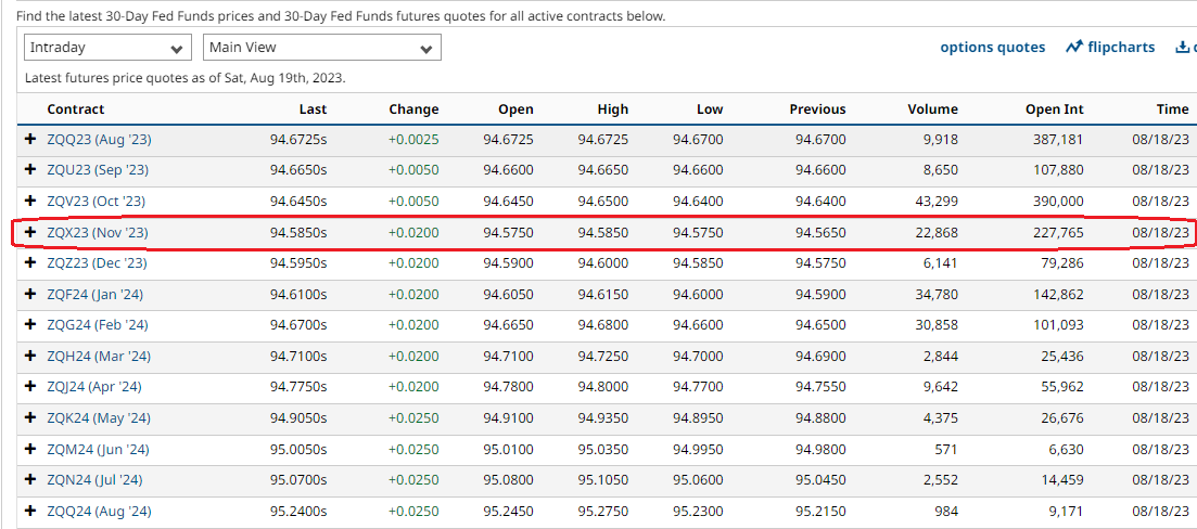 Questa situazione di incertezza sui mercati USA, ha portato i futures sui Fed Funds ad aumentare (di poco) la probabilità di un altro rialzo entro novembre prossimo e stimare un primo taglio a giugno dell’anno prossimo.