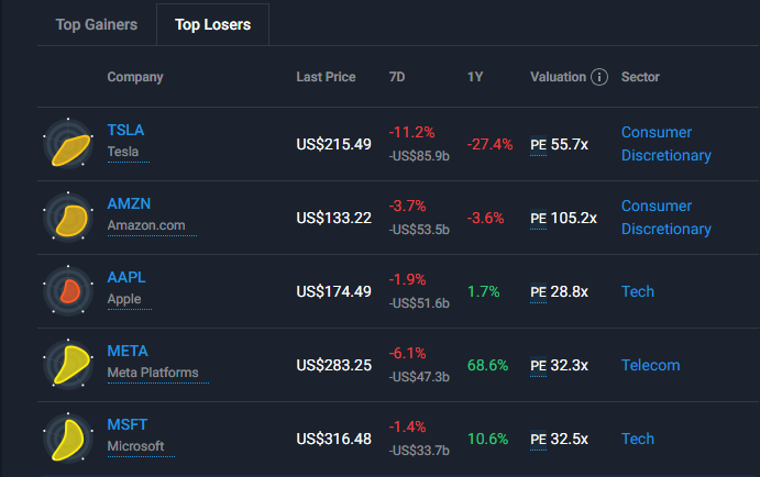 E quelle che hanno guidato il mercato negli ultimi 7 giorni al ribasso: