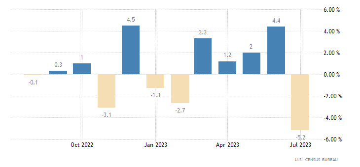 Gli ordini di beni durevoli su base mensile a luglio incassano un -5,2%, andando anche sotto al consensus che indicava un calo del 4,0%. A giugno era stata registrata una crescita del 4,4% (rivista da +4,7%). Era da febbraio che non si registrava una contrazione. Il dato è rilasciato dall’U.S. Census Bureau.