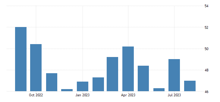 Il dato preliminare di agosto del PMI S&P Global manifatturiero rilasciato da Markit Economics si attesta a quota 47,0 punti calando rispetto alla rilevazione di luglio di 49,0 punti ed attestandosi sotto al consensus che indicava una crescita a 49,3 punti.