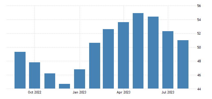 Il dato preliminare di agosto del PMI S&P Global relativo al settore dei servizi rilasciato da Markit Economics, invece, è pari a 51,0 punti. La rilevazione di luglio era pari a 52,3 punti.