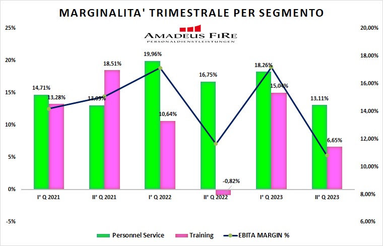Tale miglioramento è stato frutto del notevole aumento della marginalità riportata dal comparto TRAINING (dall'1,88% al 10,85%) che ha più che compensato la riduzione riportata dal PERSONNEL SERVICE (dal 18,38% al 15,79%).