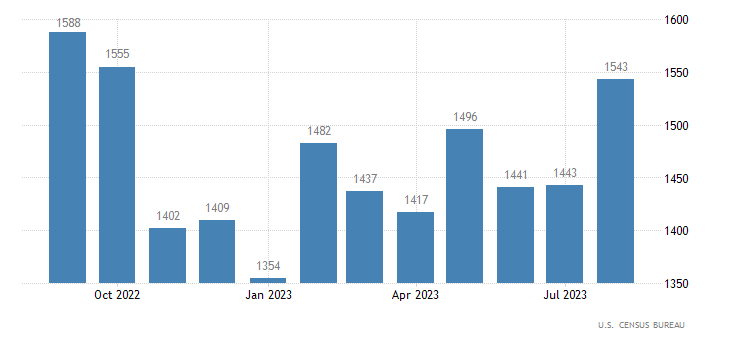 Il numero di case per le quali è iniziata la costruzione passa dal dato di 1,447 milioni (rivisto da 1,452 milioni) di luglio a quello di agosto di 1,283 milioni, registrando un calo del 11,3%. Il consensus prevedeva una discesa solo fino ad 1,440 milioni. Il dato è rilasciato dall’U.S. Census Bureau.