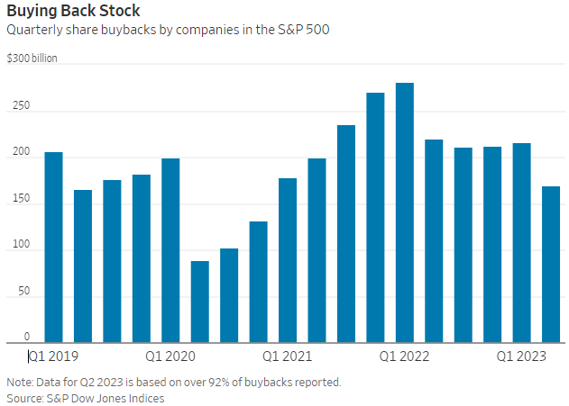 Nonostante gli obblighi fiscali più elevati, le aziende in gran parte si scrollano di dosso l’imposta. I dati preliminari di S&P mostrano che da aprile a giugno le società dell’S&P500 spenderanno circa 169 mld $ in riacquisti di azioni proprie, in calo di circa il 20% sia rispetto al primo trimestre di quest’anno che rispetto a un anno fa. Alcune aziende si sono ritirate a causa delle incertezze macroeconomiche, ma secondo Silverblatt la tassa non sta scoraggiando in modo significativo il riacquisto di azioni tra le società, dichiarando: “È un fastidio questo pagamento, ma rispetto agli utili di questo trimestre di circa 458 mld $, 1.6 mld $ non sono molti”.