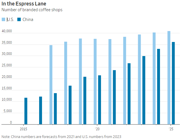 Starbucks ha aperto il suo primo negozio nella Cina amante del tè nel 1999 e nel 2015 il paese contava quasi 12.000 caffetterie di marca, secondo World Coffee Portal. L’organizzazione prevede che tale numero sarà triplicato entro il 2025, mettendo la Cina sulla buona strada per superare gli Stati Uniti in pochi anni. Shanghai ha già più caffetterie di qualsiasi altra città al mondo.