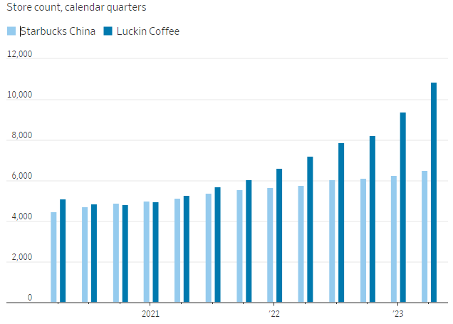 Alcuni concorrenti locali stanno mettendo in imbarazzo anche queste ambizioni. Luckin Coffee, l'unica risposta cinese a Starbucks, è stata messa in ginocchio finanziariamente dopo aver ammesso di aver falsificato le vendite. Ha avuto una ripresa drammatica sotto la nuova gestione. Tre anni fa era testa a testa con Starbucks in termini di numero di negozi e di fatturato.