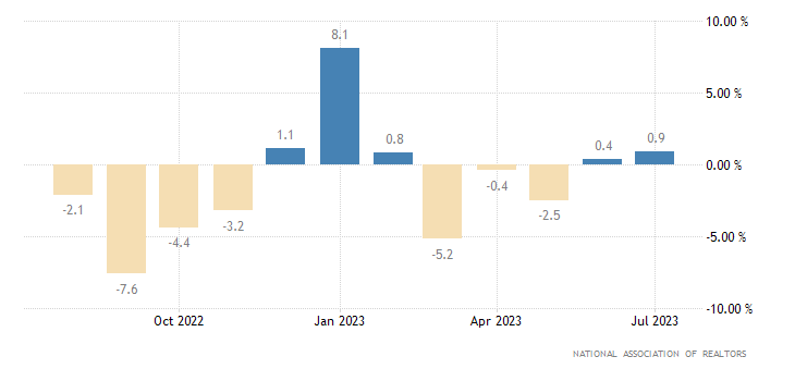 Il dato sulle vendite immobiliari in corso (che misura il cambiamento nel numero di case con contratto di vendita, ma in attesa della transazione di chiusura, escludendo le nuove costruzioni) a livello mensile a luglio cresce dello 0,9%, rilevazione in direzione opposta rispetto ad un consensus che indicava una contrazione dello 0,6%. Per trovare un rialzo più marcato di quello di luglio si deve tornare a gennaio. Il dato è rilasciato dalla National Association of Realtors.