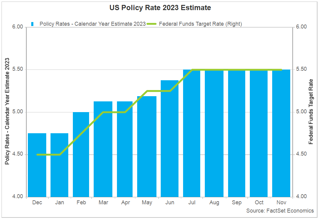 Le politiche sui tassi di interesse della Federal Reserve sono state una pietra miliare per i movimenti di mercato nel 2023. Il 6 gennaio l’indice ha avuto il giorno di maggior movimento. L'indice S&P500 è salito del 2,28%, reagendo positivamente ai segnali secondo cui gli aumenti dei tassi da parte della Federal Reserve stavano effettivamente raffreddando l'economia senza innescare una recessione. Tuttavia, il mercato ha anche risentito dei timori di un rialzo dei tassi; il 21 febbraio l'indice S&P 500 è sceso del 2,00%, segnando la peggiore performance dell'anno, in gran parte a causa dei timori per ulteriori aumenti dei tassi di interesse. Nel corso dell’anno, la politica della FED e le preoccupazioni sull’inflazione sono state fondamentali per il sentiment del mercato, influenzando sei dei 12 giorni più volatili. Gli aumenti proattivi dei tassi di interesse della Federal Reserve, avviati nel marzo 2022, hanno portato a una riduzione dell’inflazione CPI su base annua da un picco del 9,1% al 6,4% entro gennaio 2023, per poi scendere al 3,2% entro ottobre. Con l’inflazione che si avvicinava al target della FED, il ritmo dei rialzi dei tassi è rallentato, con il FOMC che ha adottato solo quattro aumenti da 25 punti base nel 2023 e ha sospeso ulteriori aumenti dopo luglio. Questa strategia indica l'approccio misurato della Fed nel moderare la politica per stabilizzare l'economia mitigando al tempo stesso le perturbazioni del mercato (v. grafico):