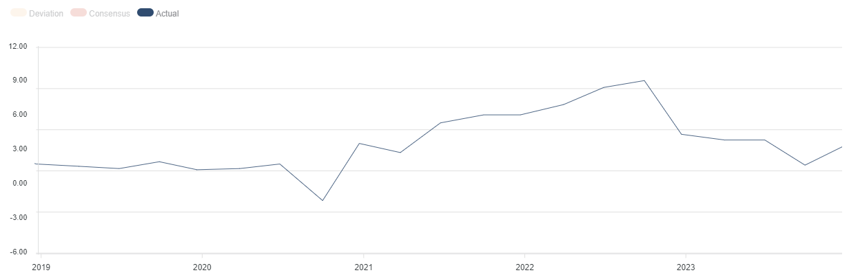 3. I progressi sull’inflazione si fermano, con il tasso dell’indice dei prezzi delle spese per consumi personali principali che si stabilizza vicino al 3%.