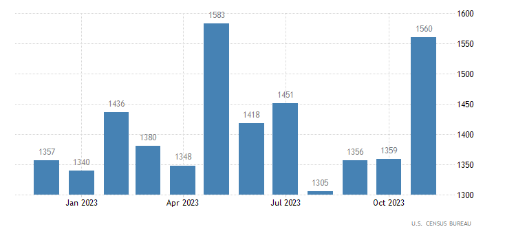 Il dato preliminare di novembre sui permessi di costruzione, invece, segna un -2,5%. In particolare, ad ottobre i permessi di costruzione erano 1,498 milioni mentre il dato preliminare di novembre si attesta a quota 1,46 milioni, sotto al consensus fissato a 1,470 milioni. Il dato definitivo di novembre rilasciato il 22 dicembre, invece, è pari a 1,467 milioni. Il dato è rilasciato dall’U.S. Census Bureau.
