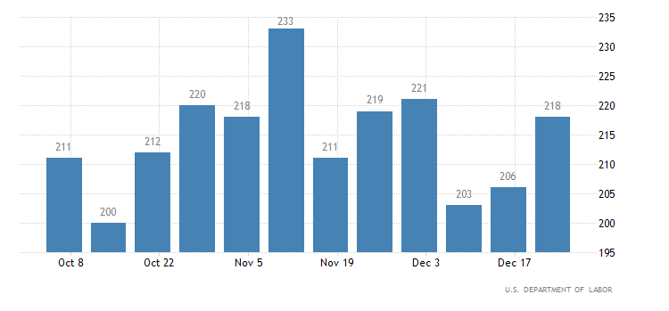 Nella settimana terminata il 23 dicembre, invece, le richieste iniziali di sussidi di disoccupazione sono state 218 mila, in crescita rispetto alle 206 mila della settimana precedente (riviste da 205 mila) ed oltre il consensus fissato a 210 mila. Il dato è rilasciato dall’U.S. Department of Labor.