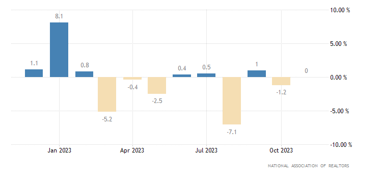Il dato sulle vendite immobiliari in corso (che misura il cambiamento nel numero di case con contratto di vendita, ma in attesa della transazione di chiusura, escludendo le nuove costruzioni) a livello mensile a novembre segna un +0,0%, contro un consensus del +1,0% ed un dato di ottobre di -1,2% (rivisto da -1,5%). Il dato è rilasciato dalla National Association of Realtors.
