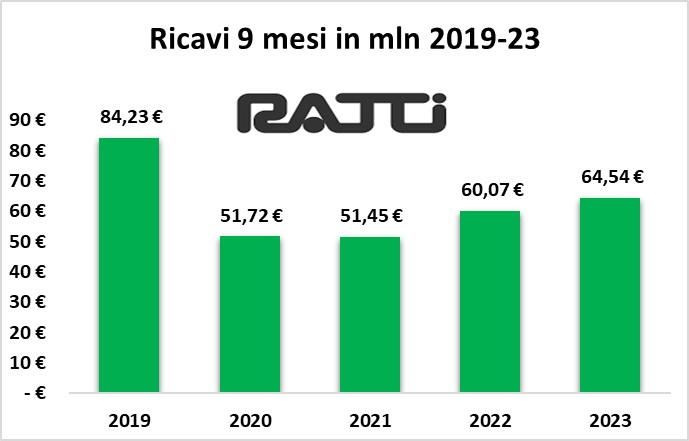 La contrazione di fatturato registrata nel Q3 rappresenta un ulteriore incidente in un percorso di recupero che fatica ad essere concluso. Il segmento del lusso, in molti casi, ha integralmente superato abbondantemente la crisi provocata dalla pandemia: purtroppo, RATTI, pur essendo un fornitore dei più importanti player mondiali del luxury, non è riuscita a tornare ai livelli pre-pandemici.