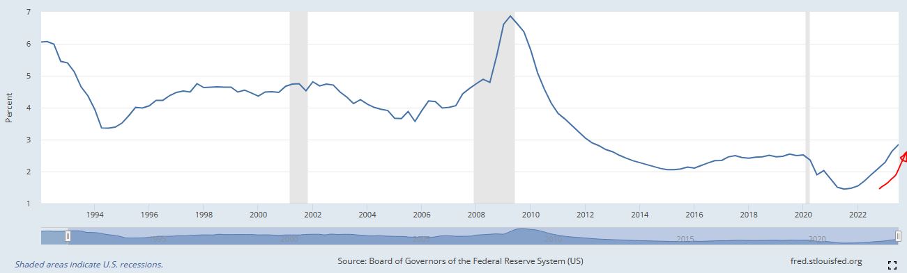Il brutto paradossalmente attira sempre più del bello proprio perché suscita in noi emozioni tali che ci bloccano dal fare e ci mettono sulla difensiva. Nella realtà dei fatti nel 2023 il GDP statunitense (alias PIL) è salito, segno di una economia al momento estremamente resiliente e forte. Ma lo sarà ancora per molto tempo? Personalmente ho qualche dubbio o comunque qualche timore, soprattutto dopo il 2024.
