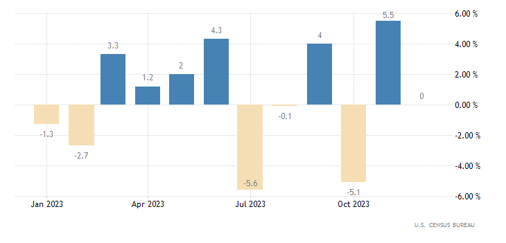 Gli ordini di beni durevoli a dicembre a livello mensile non registrano variazioni (+0,0%), nonostante un consensus del +1,1%. A novembre era stata registrata una crescita del 5,5% (rivista da +5,4%). Il dato è rilasciato dall’U.S. Census Bureau.