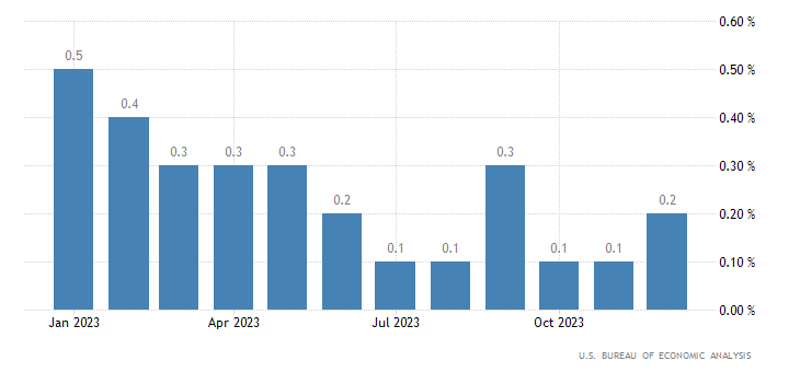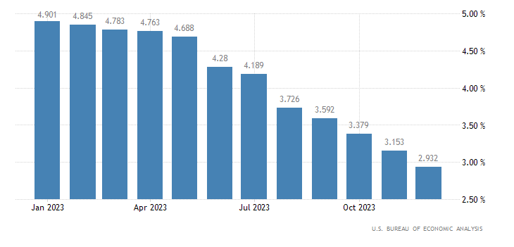 A livello annualizzato, a dicembre si registra un +2,9%, appena sotto al consensus di +3,0% ed al +3,2% di novembre. I dati sono rilasciati dall’U.S. Bureau of Economic Analysis.
